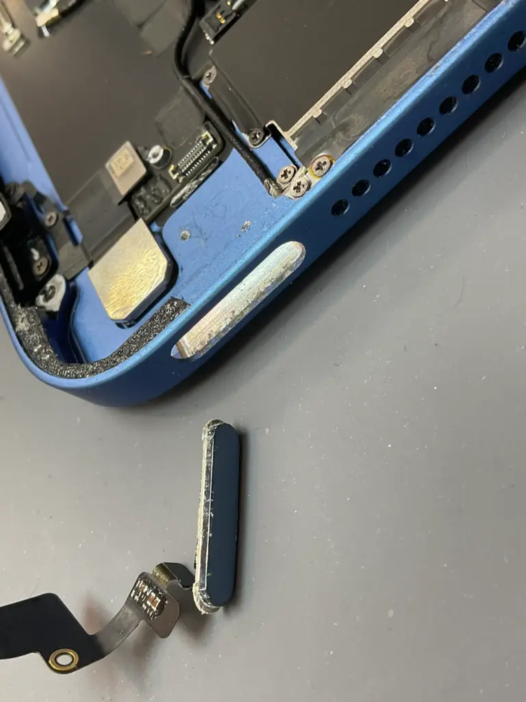 まず、落下や強い衝撃によってボタン周りのフレームが歪み、ボタンが元に戻らなくなるケース。